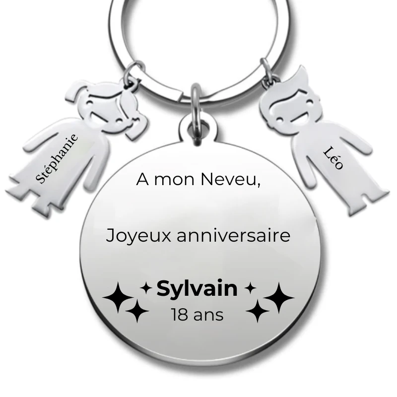 Ne manquez pas l’occasion de rendre l’anniversaire de votre neveu encore plus spécial avec notre porte-clés personnalisé. Commandez dès maintenant et offrez un cadeau mémorable qui sera chéri pendant des années.
